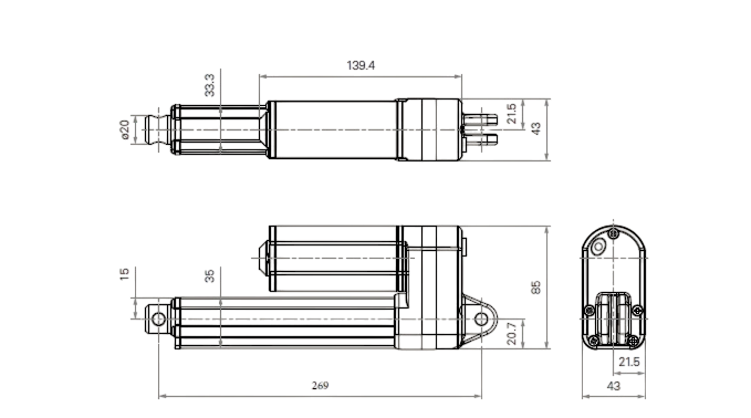 Габаритные размеры актуатора TA16-2J-150269-BB121-0015-1T-0